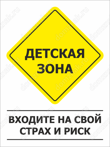 Табличка «Детская зона, входите на свой страх и риск» изготавливается в нескольких вариантах: