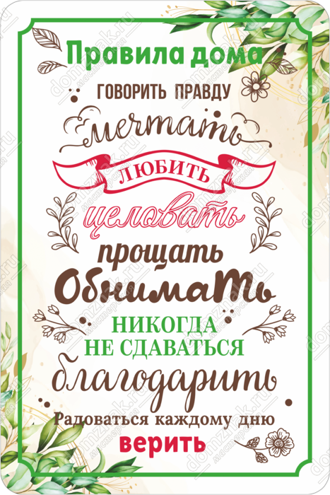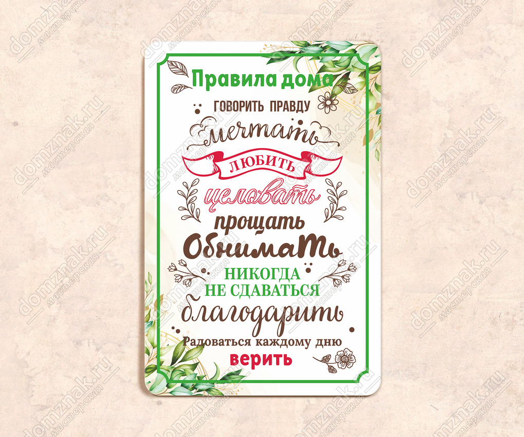 Табличка «Правила дома» изготовлена из пластика ПВХ, толщиной 4 мм. Изображение наносится по технологии УФ-печати. Табличка предназначена для использования как в помещении, так и на улице.