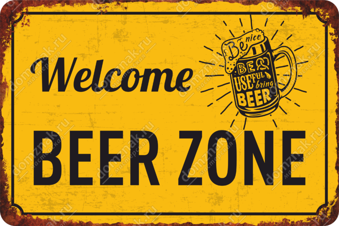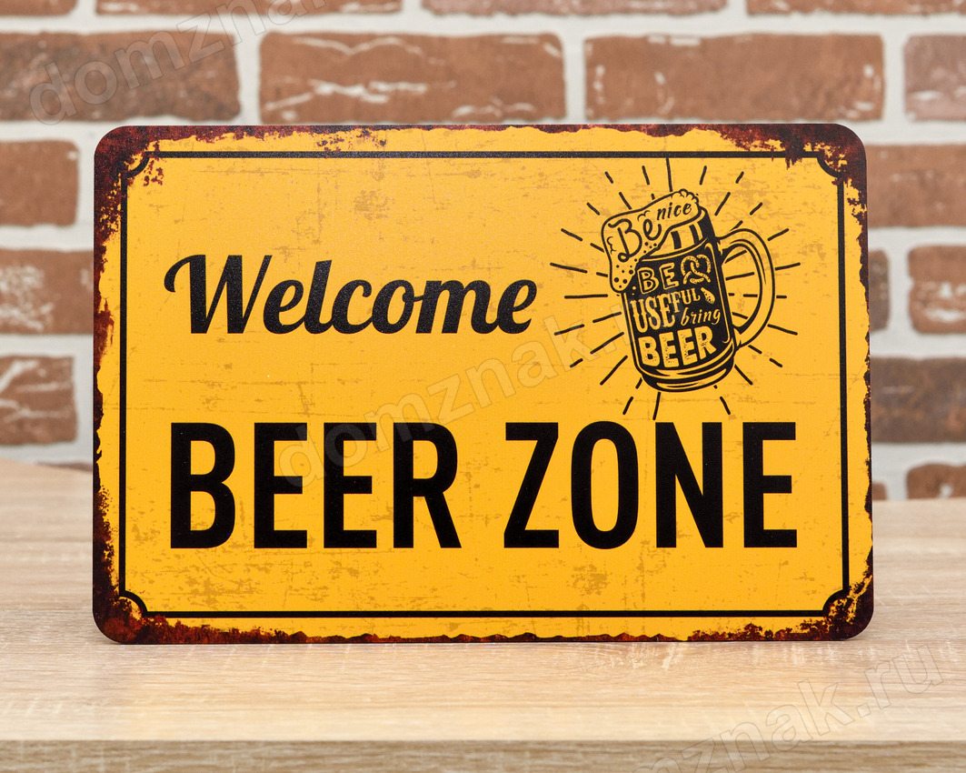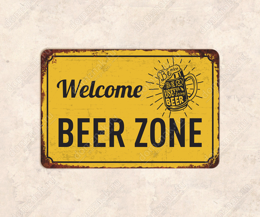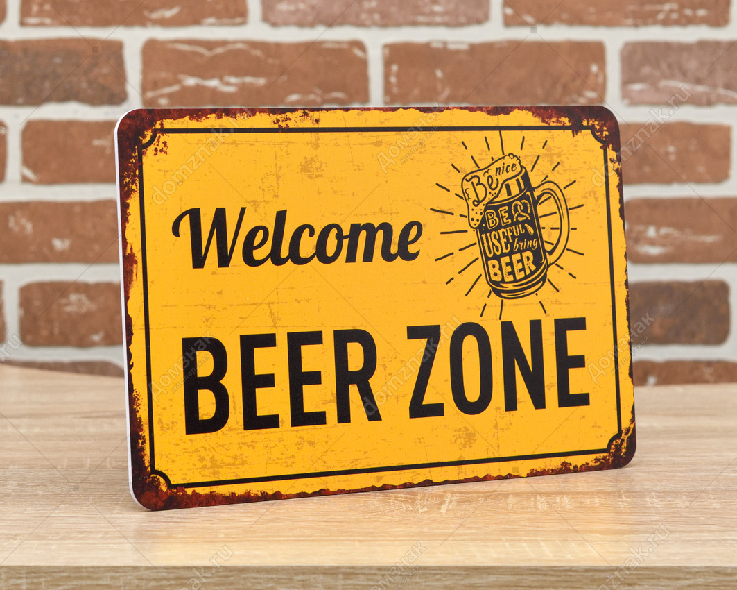Табличка «Welcome beer zone» изготовлена из пластика ПВХ, толщиной 4 мм. Изображение наносится по технологии УФ-печати. Табличка предназначена для использования как в помещении, так и на улице.