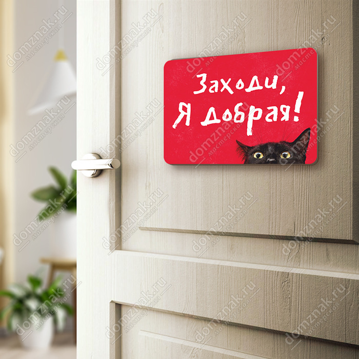 Табличка «Заходи, я добрая!» изготовлена из пластика ПВХ, толщиной 4 мм. Изображение наносится по технологии УФ-печати. Табличка предназначена для использования как в помещении, так и на улице.