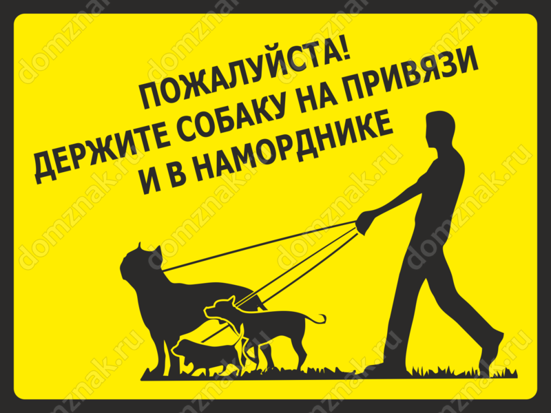 Табличка «Держите собаку на привязи и в наморднике» изготавливается на основе из пластика ПВХ или оцинкованного металла.