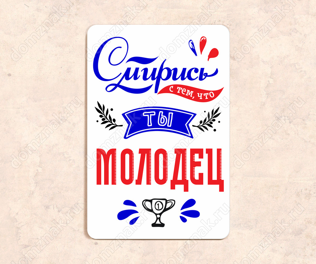 Табличка «Смирись с тем, что ты молодец» изготовлена из пластика ПВХ, толщиной 4 мм. Изображение наносится по технологии УФ-печати. Табличка предназначена для использования как в помещении, так и на улице.