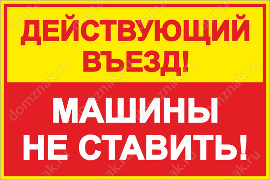 Вы можете заказать Табличку «Действующий въезд машины не ставить!» по индивидуальному дизайну или воспользоваться готовым вариантом от нашей компании.